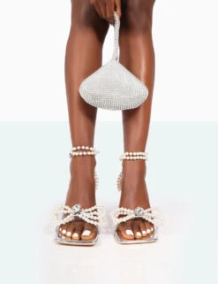 Hope Wide Fit Silver Metallic PU Clear Perspex Bow Strappy Mid Heels