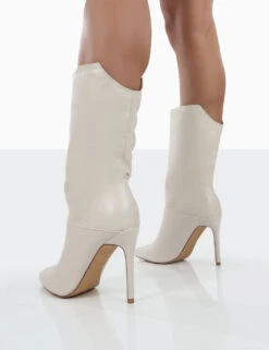 More Fun Wide Fit Grey Pu Round Toe Chunky Sole Knee High Boots