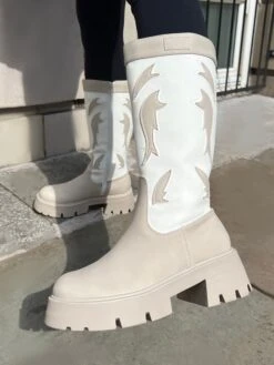 More Fun Wide Fit Grey Pu Round Toe Chunky Sole Knee High Boots