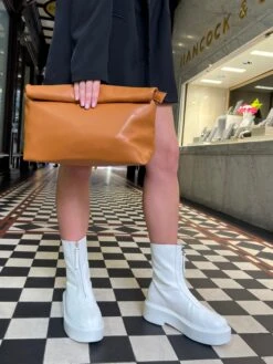 Indigo Ecru PU Platform Chunky Sole Zip Through Ankle Boot