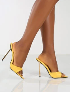 Amber X Public Desire Powerful Wide Fit Yellow Croc Metallic Stiletto Heels