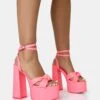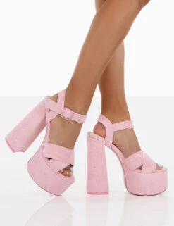 Mcloughlin Girls by PD x Kaiia, the first ever TikTok fashion collection to launch. It’s time to bring that main character energy with Content pink. These statement platform heels in towelling material will add extra height and edge to your out out looks.