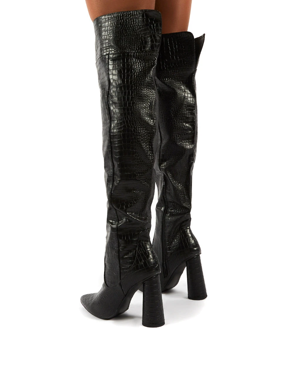 Hometown features croc design with a high heel. These over the knee statement boots are the perfect autumn shoe.