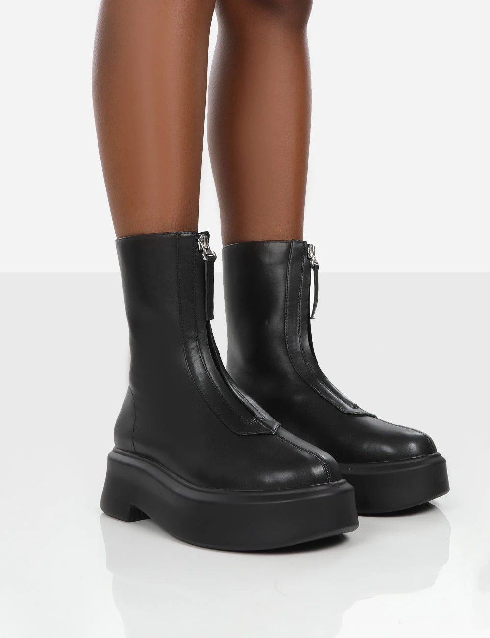 Indigo black is the ultimate AW23 chunky shoe. featuring a zip through upper detail which a chunky platform sole. Perfect transition boot for the upcoming A/W season. What is not to love?