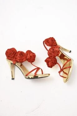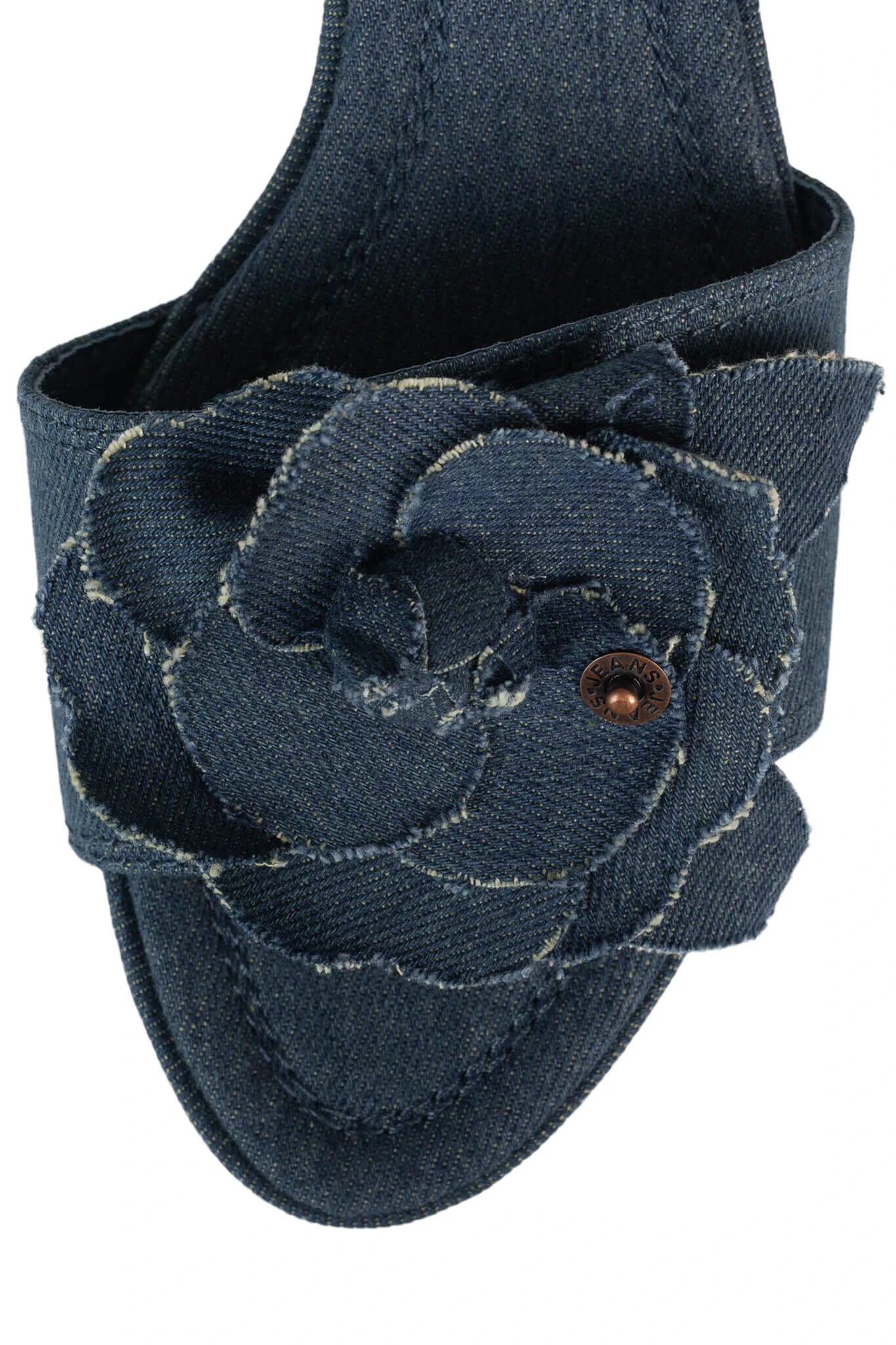 Denim kitten heel sandal with floral detail