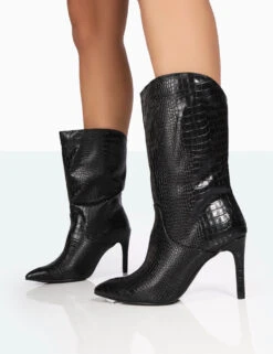 Girl, are you ready for your 2022 glow up? We’ve got you! Introducing Lisel in black wide fit in croc. These Influencer faves are set to be one of the most popular styles this year and we can see why. We’re styling these ankle boots with a blazer dress for a must-have out out ready look that is guaranteed to make you feel classy. Ready for your main character moment? Then add these heeled boots to your collection today…