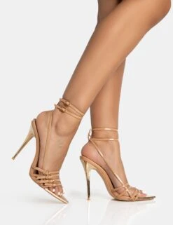Make all the heads turn with these majestic Majesty Nude Patent Buckles Wrap Around Pointed Toe Gold Stiletto Heels! Walk with confidence and get ready to reign over any room you step into. These beauties will have you feeling like the queen you are, so rock them with pride!