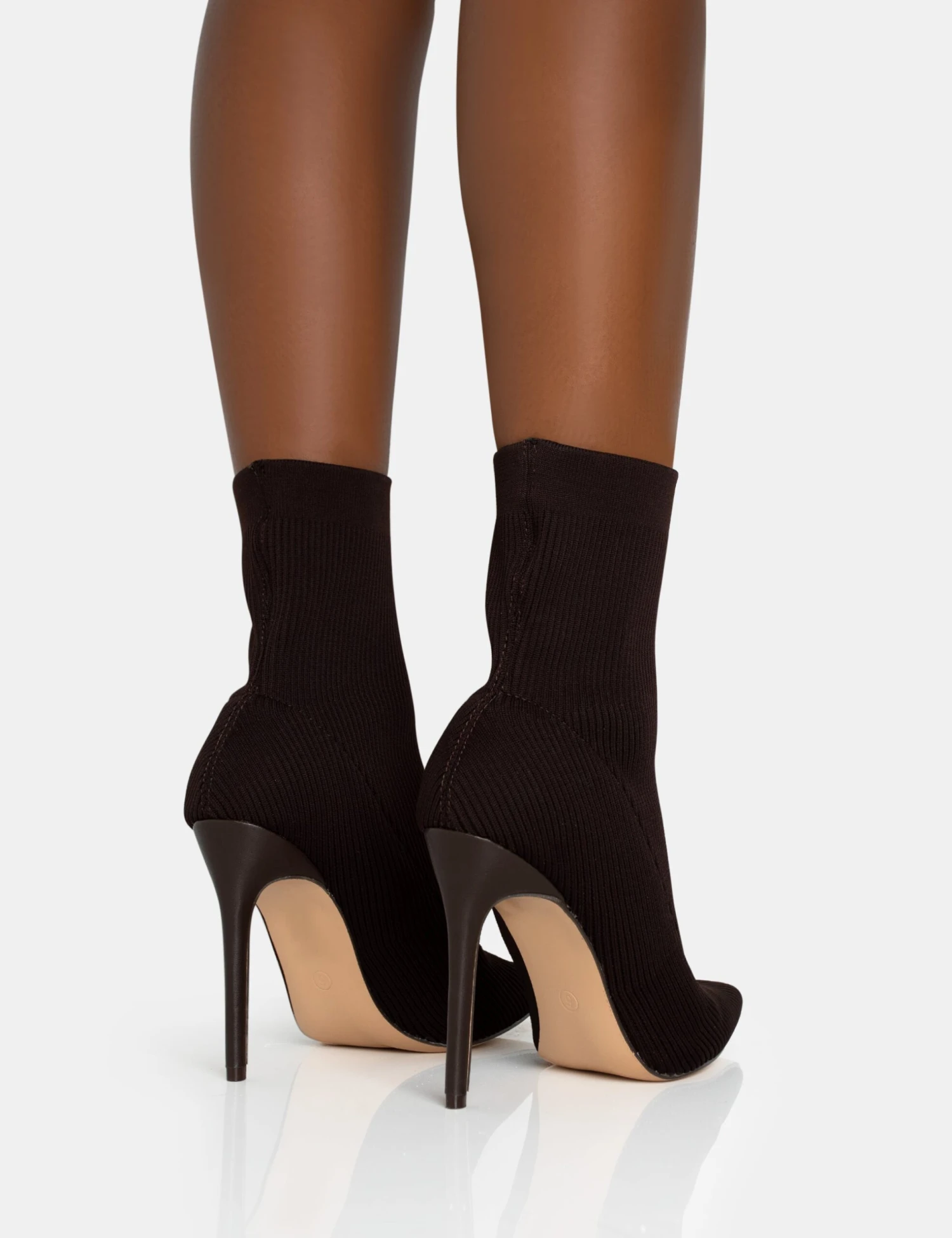 Mirival Chocolate Knitted Stiletto Sock Pointed Toe Ankle Boots