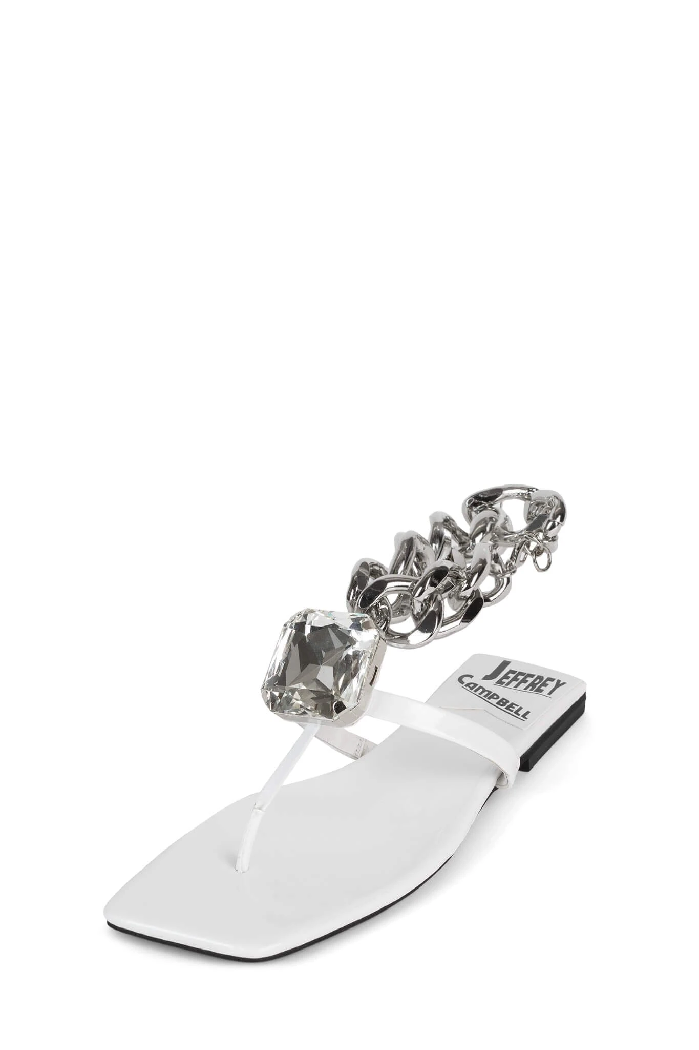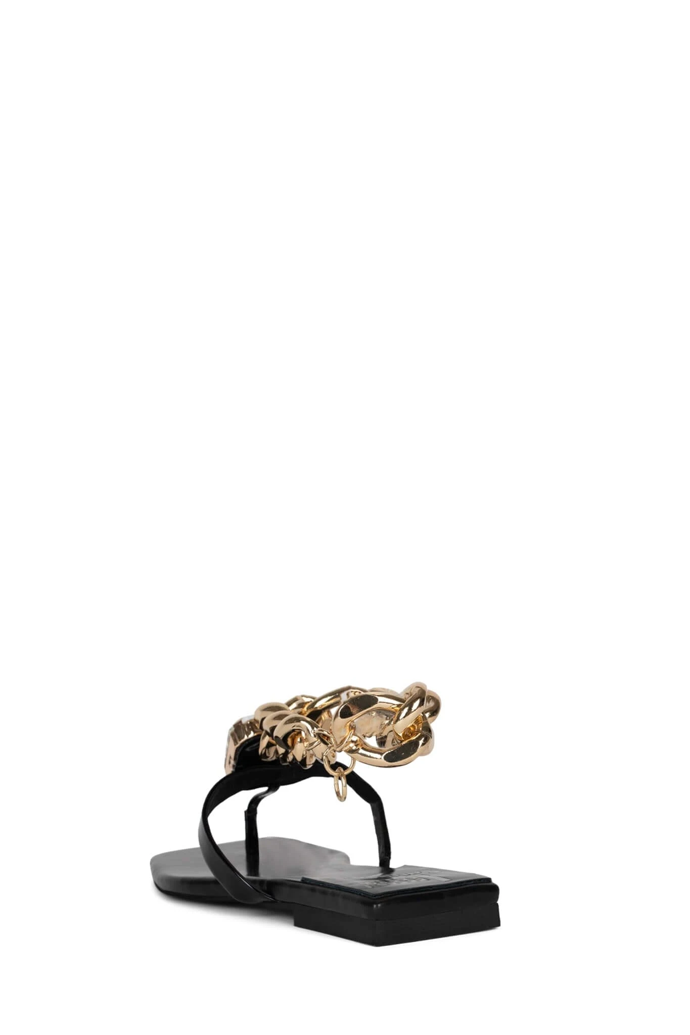 Flat thong sandal with chain ankle strap and jewel ornament