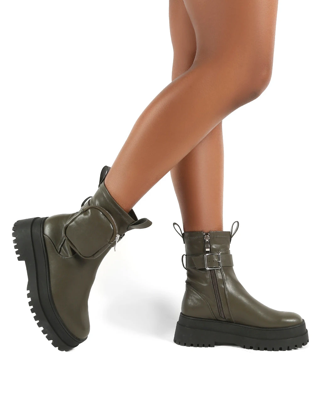 Thought features a chunky sole, side zip and removable pouch detailing. Pair these with jeans or a knitted dress to complete your winter look.